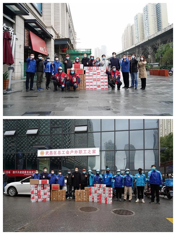許鵬代表黃鶴樓酒業(yè)為騎手們送去口罩、防護服等近5萬元防疫物資,并叮囑他們做好個人衛(wèi)生防疫,在保障市民生活的同時,一定要做好自我保護。