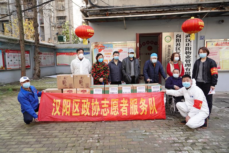 3月14日,黃鶴樓酒業(yè)黨委委員、總經(jīng)理助理魏國與漢陽區(qū)政協(xié)志愿者服務(wù)隊一行前往向陽社區(qū)開展慰問,為社區(qū)居民送去了米、油、豬肉等生活物資,并捐贈了萬余元防疫物資。