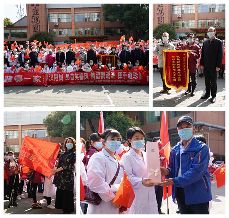 來時冰霜雨雪,走時春暖花開。歡送儀式上,徐麗代表漢陽區(qū)新冠肺炎疫情防控指揮部對江西省醫(yī)療隊(duì)的千里馳援送上了衷心的感謝,感謝醫(yī)療隊(duì)在抗擊疫情戰(zhàn)斗的關(guān)鍵時刻,毅然決然地奔赴湖北、馳援武漢,武漢將永遠(yuǎn)銘記醫(yī)療隊(duì)的付出與犧牲。