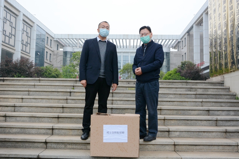 4月20日,咸寧市科學(xué)技術(shù)協(xié)會黨組書記朱必平一行慰問黃鶴樓酒業(yè)咸寧分廠,咸寧分廠廠長李良代表公司接受捐贈物資。