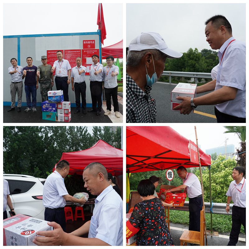 7月8日,黃鶴樓酒業黨委書記、董事長許鵬,黨委委員、總經理助理魏國一行慰問漢陽區洲頭街防汛指揮部、省金屬材料漢陽分公司防汛值守點、前進村防汛值守點及黃鶴樓酒業防汛值守點,并為防汛人員送去了西瓜、面包、清涼飲品等物資。