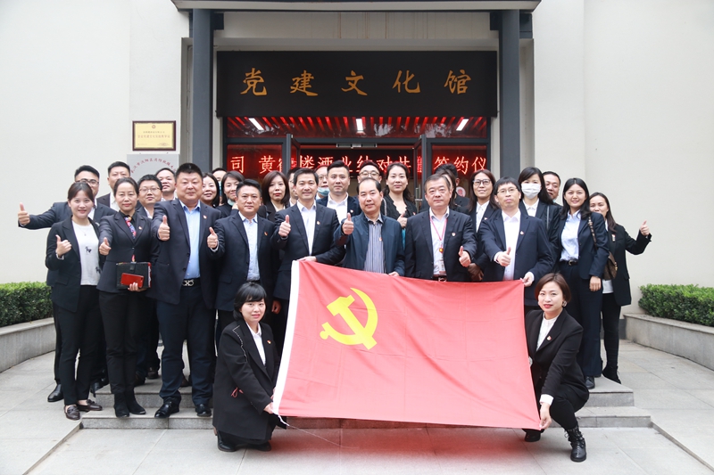 簽約儀式上,全體黨員重溫入黨誓詞,母克現與王超代表中共湖北金葉陽光商業連鎖有限公司支部委員會和中共黃鶴樓酒業有限公司銷售黨總支部委員會簽訂《黨建共建協議書》和《黃鶴樓酒經營合作合同》。