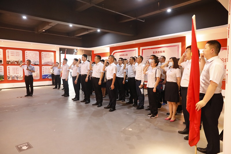 在黃鶴樓酒業黨建文化館,聶超一行重溫了入黨誓詞,黃鶴樓酒業工會主席、黨工團中心副總監張瑞分享黨史故事,以中國共產黨開天辟地、改天換地、翻天覆地、驚天動地四個歷史時期為重點,闡述了黨波瀾壯闊的百年征程和輝煌成就。