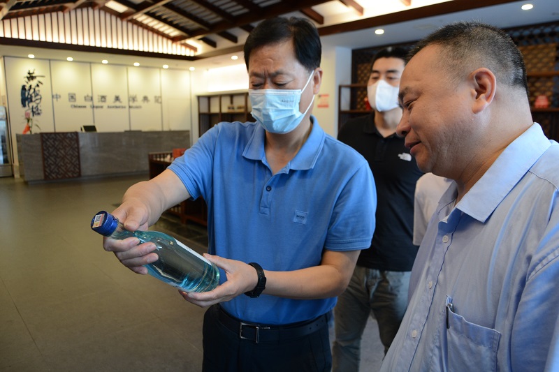 7月3日,湖北省文化和旅游廳黨組成員、副廳長陶宏家一行調研黃鶴樓森林美酒小鎮,咸寧市文化和旅游局黨組書記、局長李振,黨組成員、副局長阮勁松陪同調研,黃鶴樓酒業酒體設計總工程師李久洪,釀造管理中心總監助理史健接待來訪。