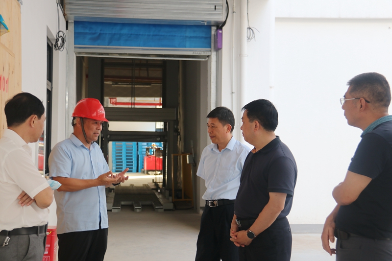 劉建宇一行現場調研了釀造車間、制曲車間等。閔波平詳細介紹了項目施工進展、設施設備安裝使用和人才儲備招聘等情況。