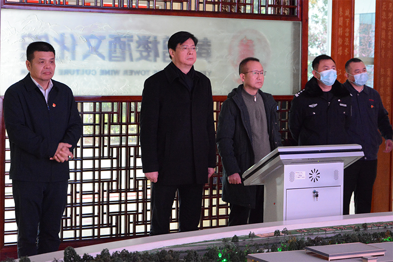 1月26日,咸寧市政府黨組成員、副市長吳曉波一行調研黃鶴樓酒業(咸寧)有限公司,咸寧高新區黨工委書記、管委會主任夏福卿,黨工委委員、紀監委書記廖焰山陪同調研,黃鶴樓酒業黨委委員、咸寧分廠廠長兼采購中心總監謝毅,酒體設計總工程師李久洪,釀造管理中心總監助理史健參加活動。