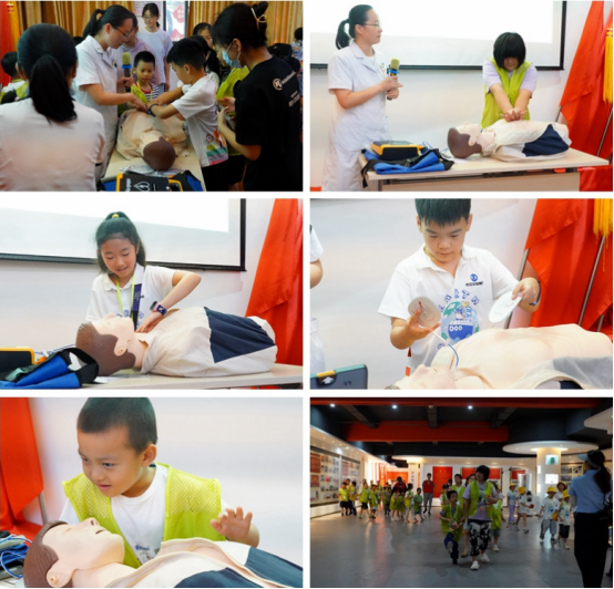 活動采用了理論知識講解與實踐操作訓練相結合的方式,首先,黎醫生向小朋友們展示了AED除顫儀的樣貌、普及了AED的重要性和安裝地點,并結合生活案例,詳細講解了心肺復蘇及AED使用的技能操作要領和注意事項。