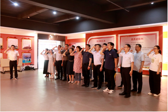 靳鋒一行先后調(diào)研了天成坊釀造車間、名人酒窖、酒文化博物館和黨建文化館。在黨建文化館,靳鋒帶領(lǐng)全體黨員重溫了入黨誓詞,回顧了中國共產(chǎn)黨百年奮斗歷史和武漢革命史,了解了黃鶴樓酒業(yè)黨建工作開展情況。