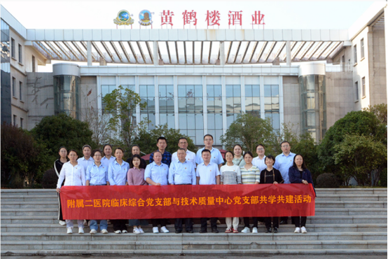 近日,黃鶴樓酒業技術質量中心黨支部與湖北科技學院附屬二醫院臨床綜合黨支部聯合開展共學共建活動,湖北科技學院附屬二醫院臨床綜合黨支部書記劉濤,黃鶴樓酒業技術質量中心黨支部書記、酒體設計總工程師李久洪出席活動。