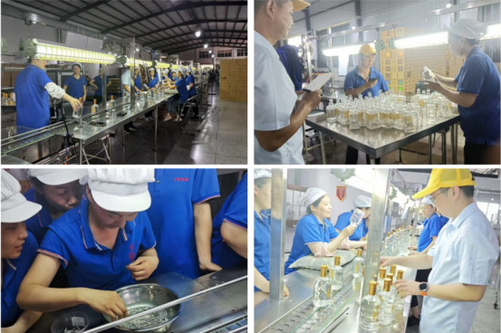 競賽現場,參賽選手分別在“火眼金睛-驗酒比拼”“心靈手巧-鉚釘分類”“質檢能手-酒瓶缺陷識別”三個項目上比拼操作技能,車間管理人員擔任裁判和記錄員,現場氛圍熱烈,緊張有序,經過激烈的角逐,共產生優勝人員11人。