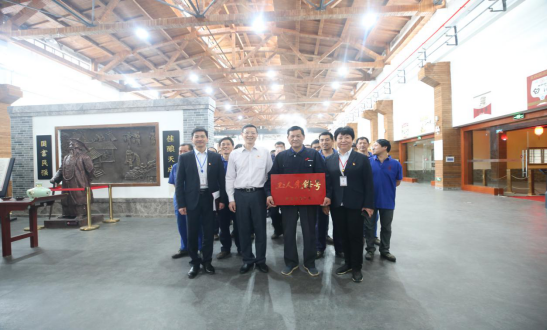 4月26日,湖北省經(jīng)貿(mào)工會主任周溢一行工會領導到黃鶴樓酒業(yè)參觀并為武漢釀酒車間授牌。