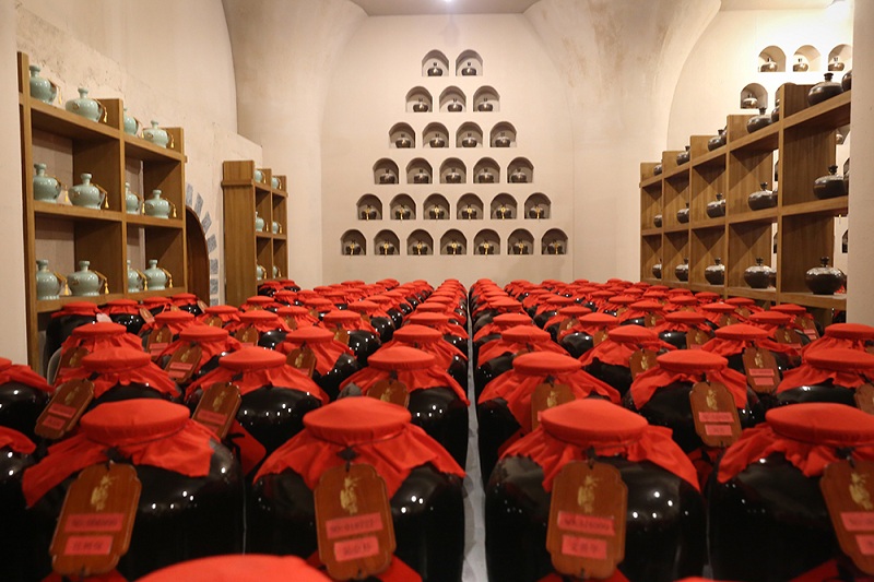 名人酒窖是博覽園內(nèi)原酒存儲和高端定制基地,仿窯洞式建筑,常年恒溫恒濕,原酒儲存于土陶壇、橡木桶等容器中,使得原酒老熟更好,賦予黃鶴樓酒更香、更柔、更順的特點。