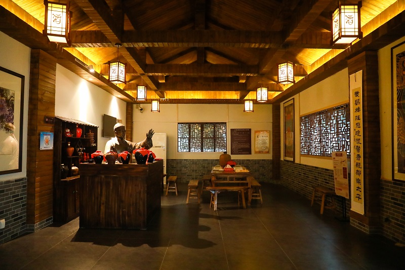 天成坊釀造車間起源于張之洞獻酒,光緒帝御賜名為“天成坊”,寓意佳釀天成,國富民強。在天成坊釀造車間,游客能親身領略名酒生產(chǎn)、窖池發(fā)酵的全過程,品嘗原糧在地缸中經(jīng)時間沉淀長期發(fā)酵后釀造的原酒。